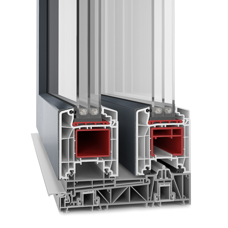 Profilé Baie soulevante-coulissante PVC Twinset® PremiumBaie soulevante-coulissante PVC-Alu ouverteBaie soulevante-coulissante PVC-Alu ferméeBaie soulevante-coulissante PVC-Alu semi-ouverteSeuil plat Baie soulevante-coulissante PVC-Alu