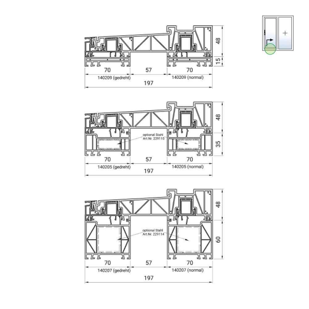 Sur Fenetre24.com, vous pouvez découvrir les coupes, les détails et des plans CAD de nos baies soulevantes-coulissantes fabriquées en Allemagne par fenetre24.com. Vous trouverez tous les entraxes et distances de nos profilés de baies. En outre, vous visualiserez aussi l’armature de nos baies soulevantes-coulissantes en PVC. Avec ces données, la pose de vos baies sera plus simple et pratique.