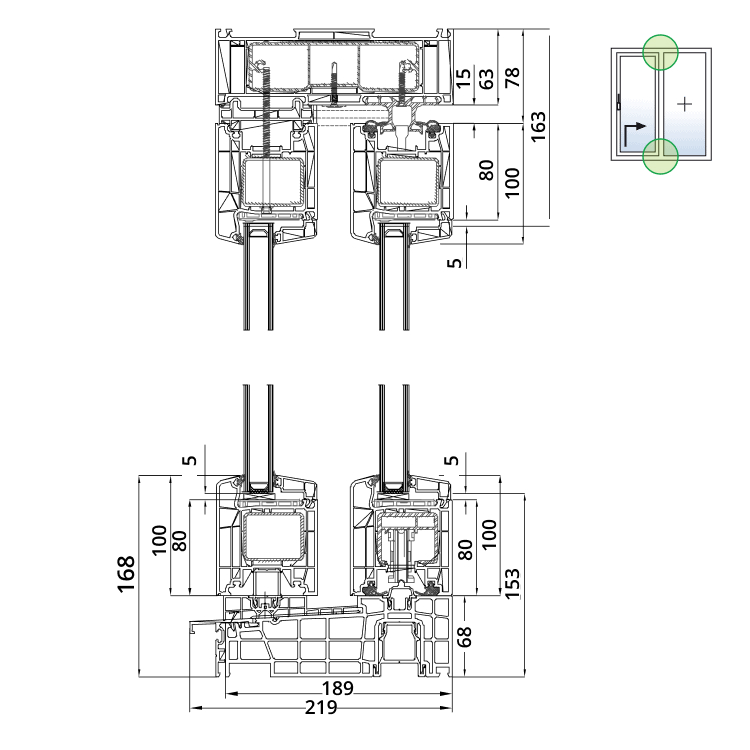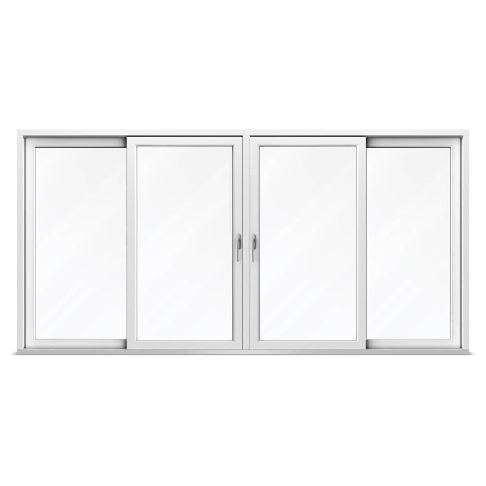 Baie vitrée 4mBaie vitrée 4m 3 vantauxBaie vitrée 4m 4 vantauxProfilé Baie soulevante-coulissante PVC IDEAL® BasicBaie soulevante-coulissante PVC vue de l'intérieurSection verticale du cadre supérieur et du seuil inférieur