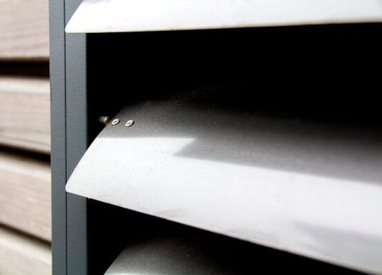 Le caisson de brise-soleil orientable (BSO) extérieur rectangulaire 90° en aluminium séduit par son design sobre et élégant. Il est compatible avec le type de lames plates de 80 mm et disponible en différentes tailles. Cette forme de caisson est parmi les plus classiques et est également disponible pour d’autres systèmes d'ombrage que nous proposons, tels que les volets roulants.