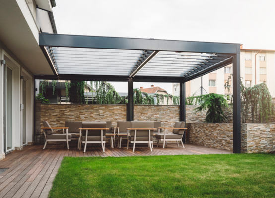 Les lames orientables vous permettent d'avoir une maîtrise de l'ensoleillement et de la ventilation naturelle, pour une température agréable sous la pergola dans toutes les conditions climatiques.